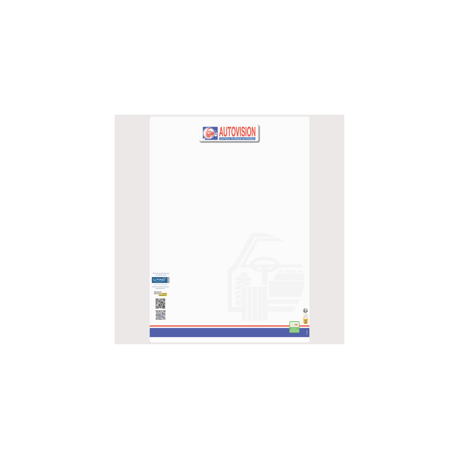 Papeterie aux couleurs d’Autovision. Comprenant les logos Autovision, certifications et partenaires pour vos relances ou courriers.